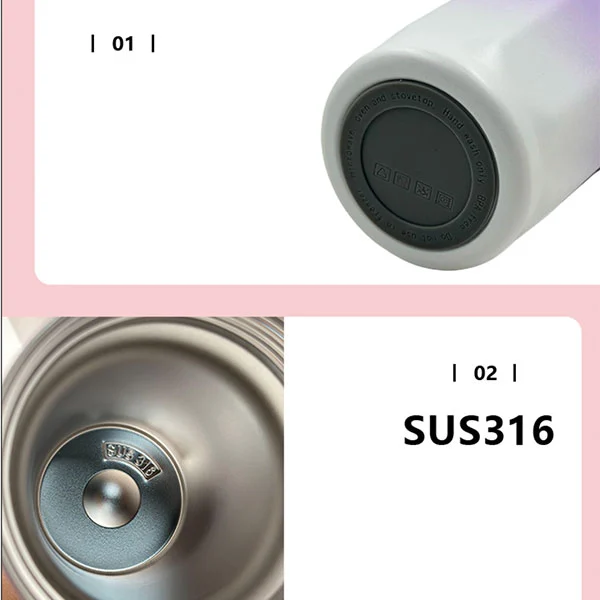 এটি খড়ের সাথে ভ্যাকুয়াম ইনসুলেটেড স্টেইনলেস স্টিলের বোতল, উপাদানটি 316 স্টেইনলেস স্টিল (অভ্যন্তরীণ অংশ) এবং 201 স্টেইনলেস স্টিল (বাইরের প্রাচীর) দিয়ে তৈরি, ক্ষমতা 500 মিলি।