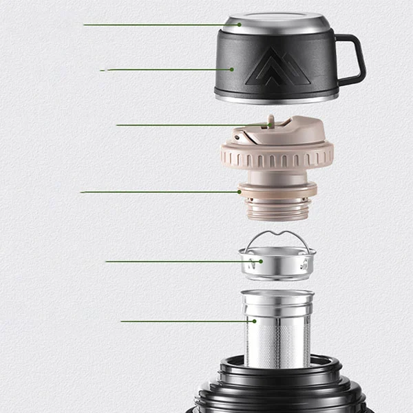 আল্ট্রা-হাই কোল্ড ইনসুলেশন পারফরম্যান্স সহ এই ট্র্যাভেল ফ্লাস্কটি ডাবল-লেয়ার স্টেইনলেস স্টিল দিয়ে তৈরি, অভ্যন্তরীণ লাইনার এবং বাইরের প্রাচীর তামা-ধাতুপট্টাবৃত। এটির ভ্যাকুয়াম হার 99.8%রয়েছে, কার্যকরভাবে তাপ স্থানান্তর হ্রাস করে এবং অবিচ্ছিন্ন তাপ এবং ঠান্ডা নিরোধক সরবরাহ করে।