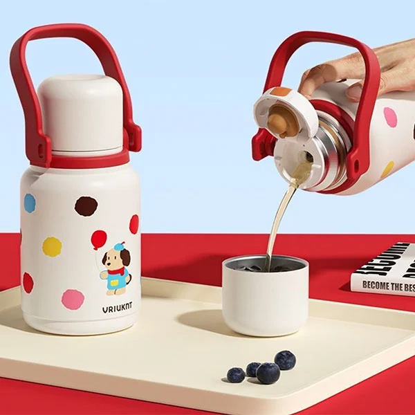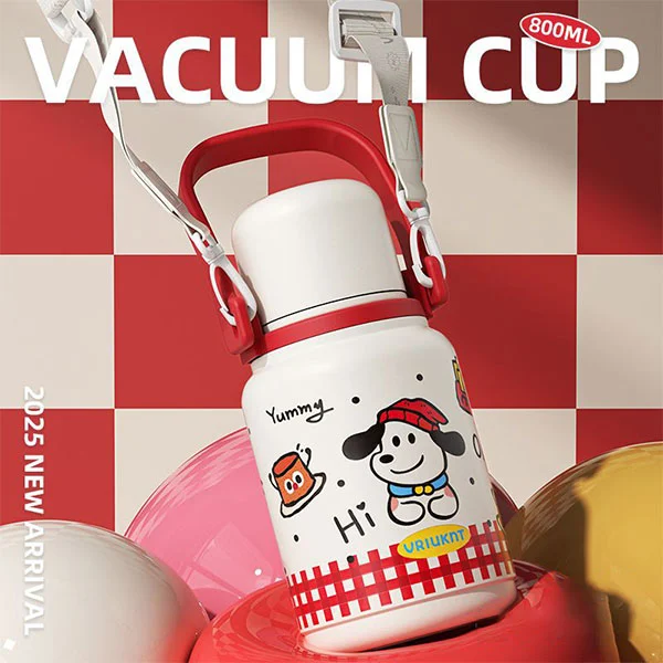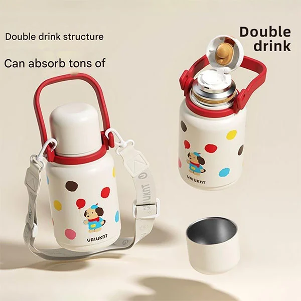 ডিশওয়াশার সেফ ভ্যাকুয়াম ফ্লাস্ক একটি বড় হ্যান্ডেল সহ আসে এবং একটি কাঁধের চাবুক সহ আসে, যা শিশুদের বা প্রাপ্তবয়স্কদের তাদের হাত তুলতে এবং খালি করার জন্য উপযুক্ত। ঢাকনাটি ওয়াটার কাপ হিসাবেও কাজ করতে পারে